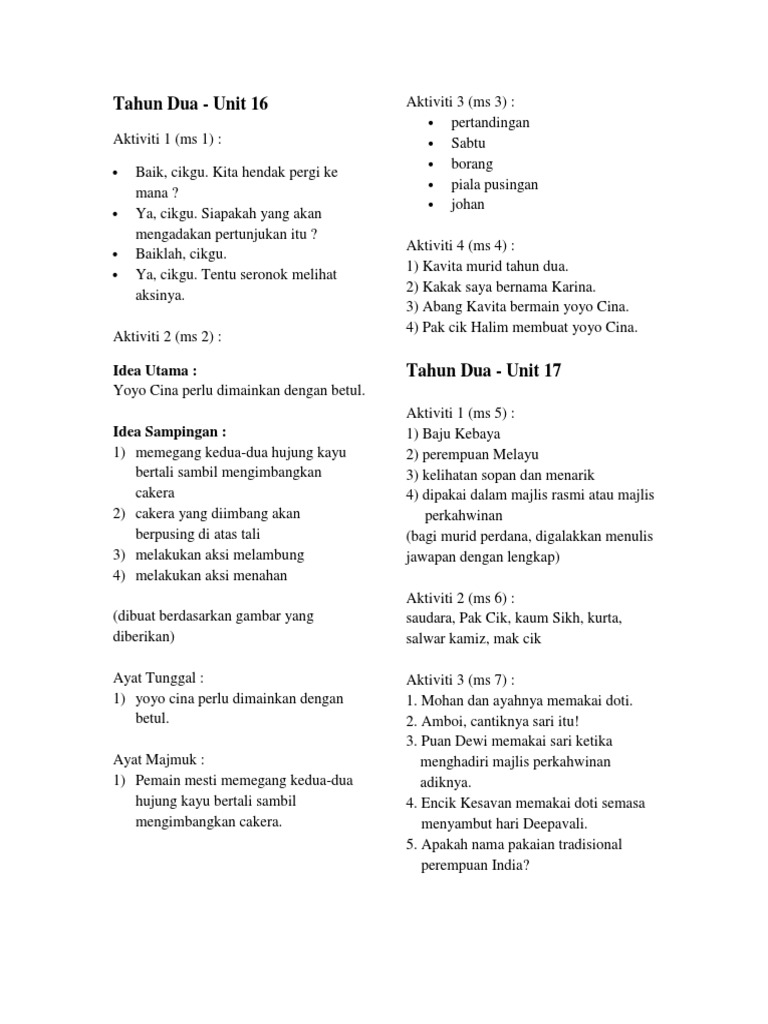 Buku Panduan Guru Latihan Jawapan Buku Aktiviti Bm Tahun 2 Jilid 1