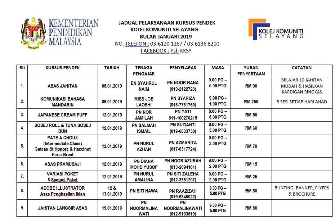 Jadual Kursus Pendek Bulan Januari 2019 Kolej Komuniti Sungai Petani Facebook