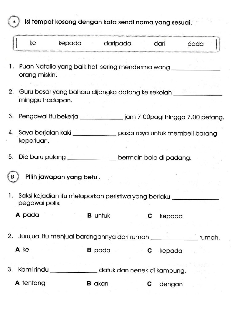 Latihan Kata Sendi Nama