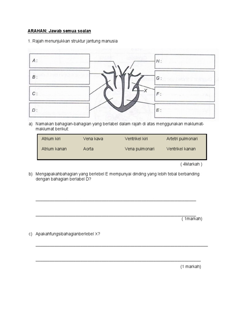 Ujian Formatif Sains Tingkatan 3 Peredaran Darah Dan Pengangkutan