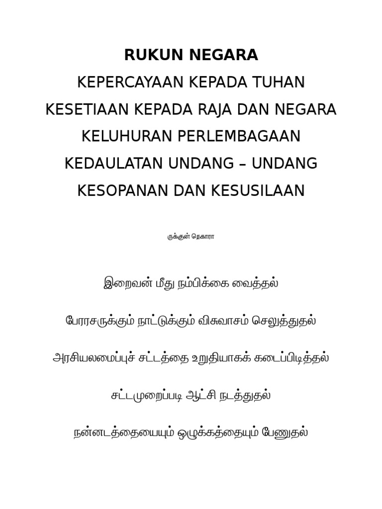 Rukun Negara In Tamil Translation