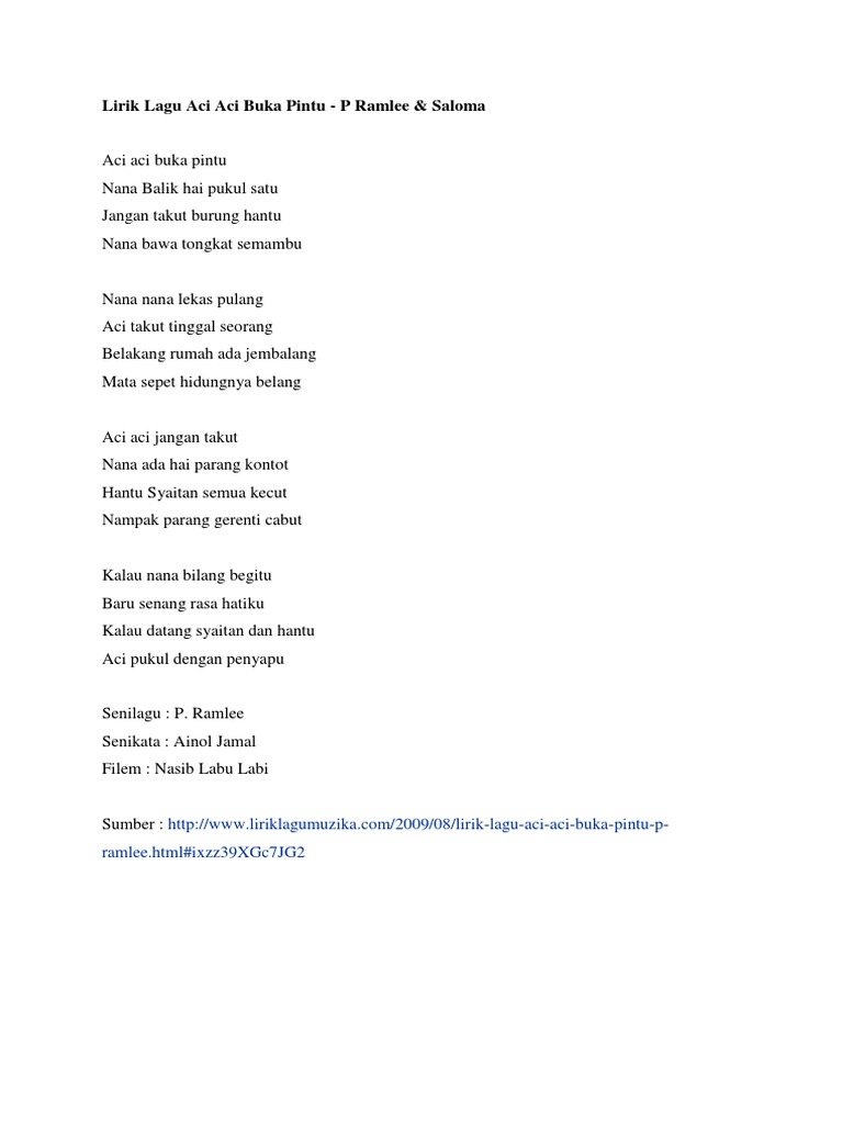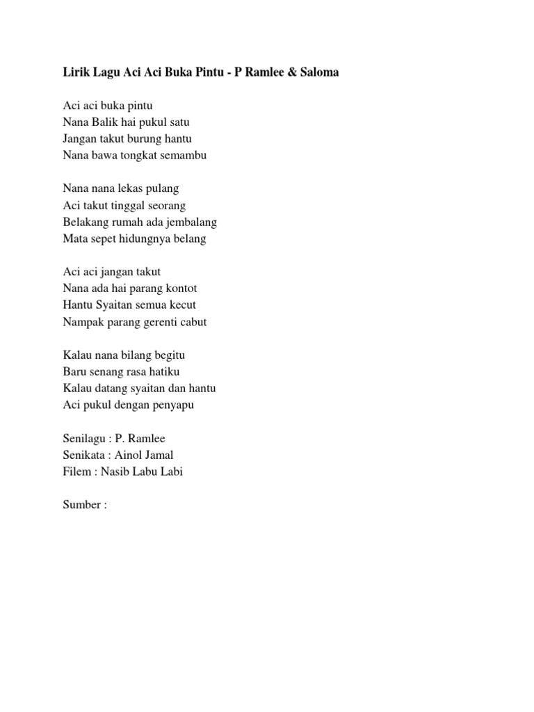 Lirik Lagu Aci Aci Buka Pintu P Ramlee Saloma