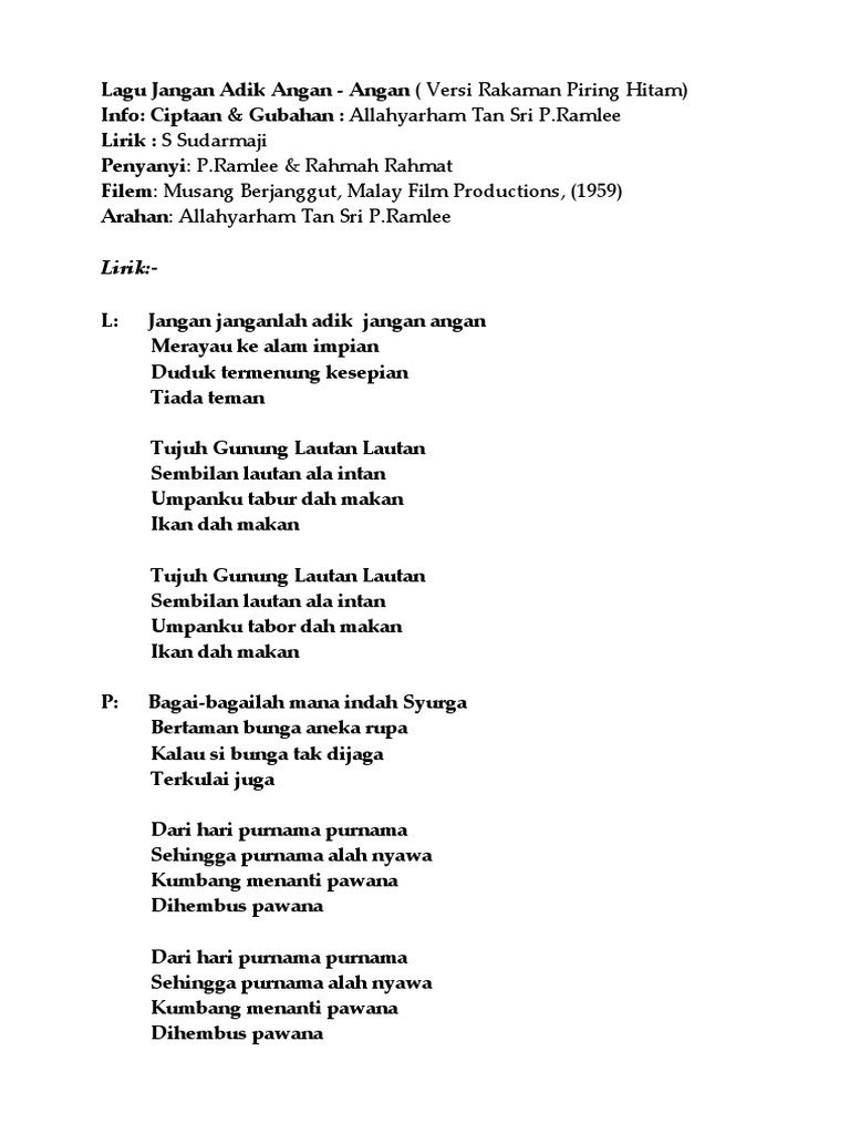Dengar Ini Cerita Lirik P Ramlee Kkbox