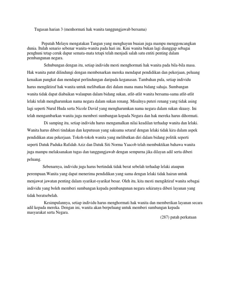 Menghormati Hak Wanita Tanggungjawab Bersama