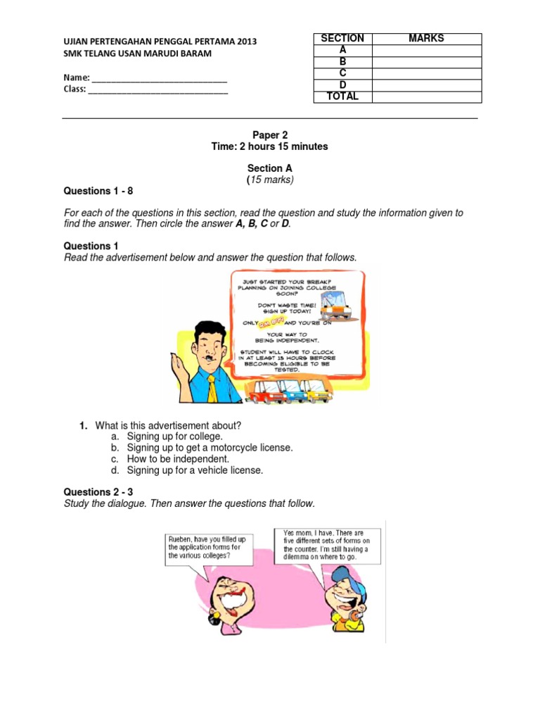 Exam Paper English Form 2