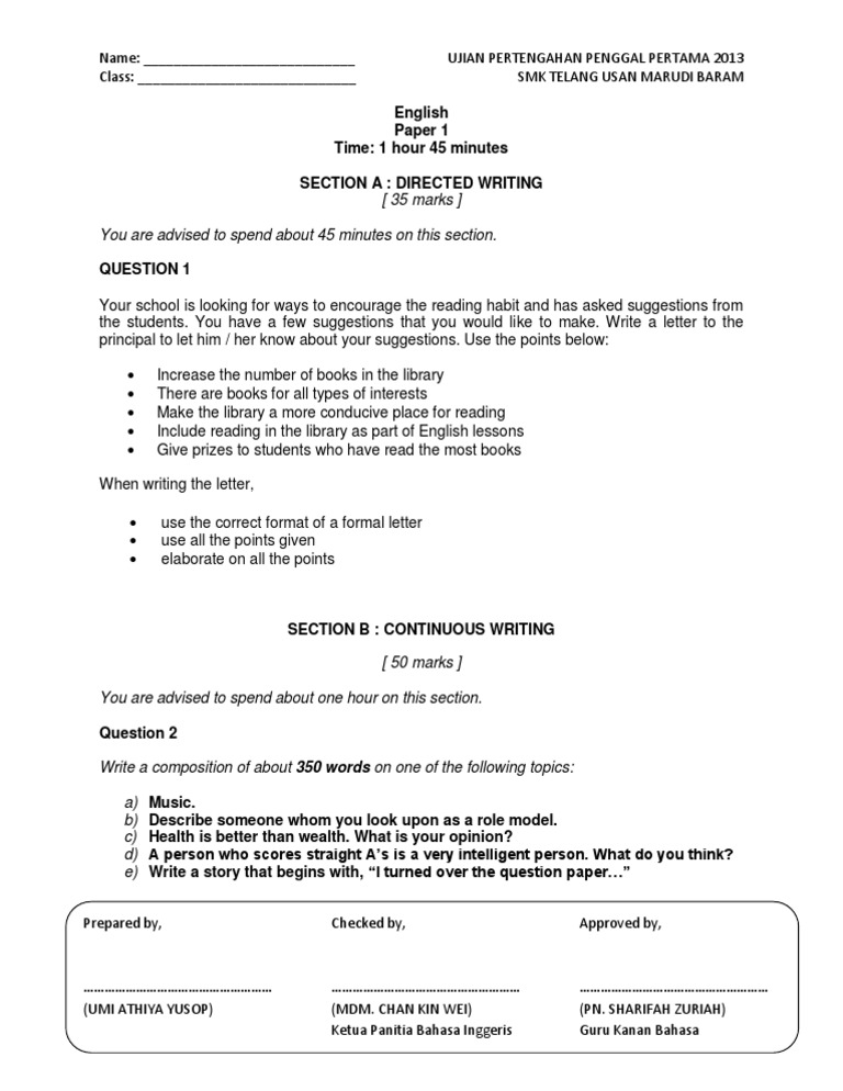 Form 2 English Mid Year 2014 Examination Pt3 Formatted Exam Linguistics Cognitive Science