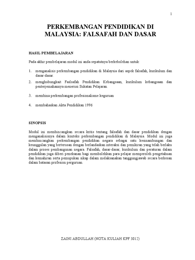 Kft 3012 Perkembangan Pendidikan Di Malaysia Falsafah Dan Dasar By Zaidan Flipsnack