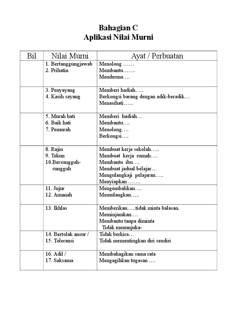 Nilai Nilai Murni Dalam Pdp