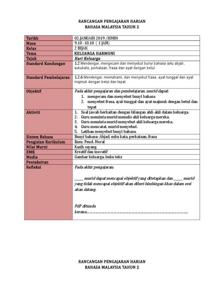 Rancangan Pembelajaran Dan Pemudahcaraan Harian