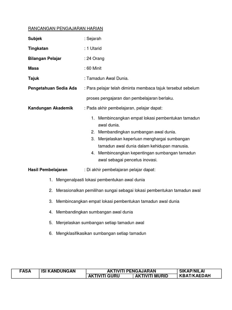 Subjek Tingkatan Bilangan Pelajar Masa Tajuk Pengetahuan Sedia Ada