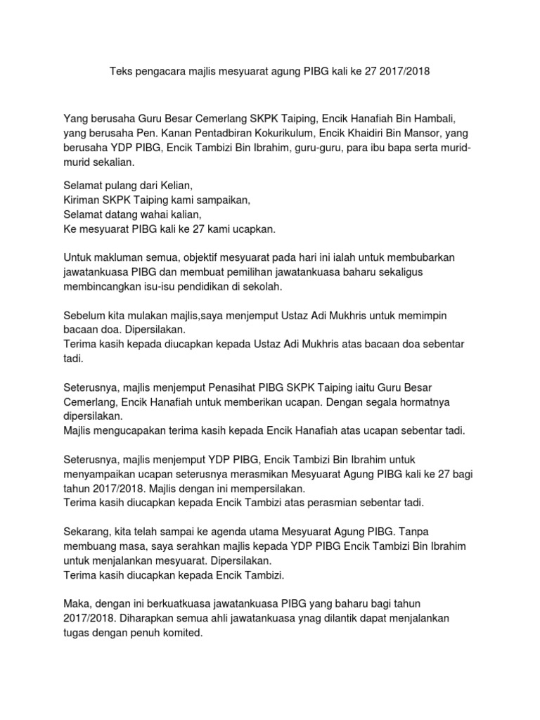Teks Pengacara Majlis Mesyuarat Agung Pibg Kali Ke 27 2017