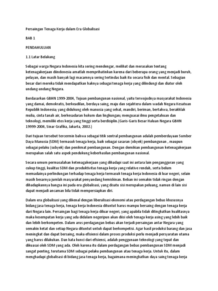 Persaingan Tenaga Kerja Dalam Era Globalisasi
