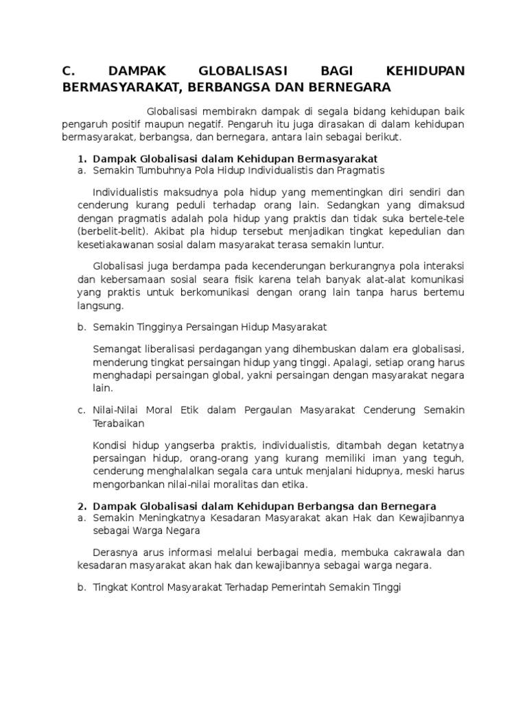 Dampak Globalisasi Bagi Kehidupan Bermasyarakat Berbangsa Dan Bernegara