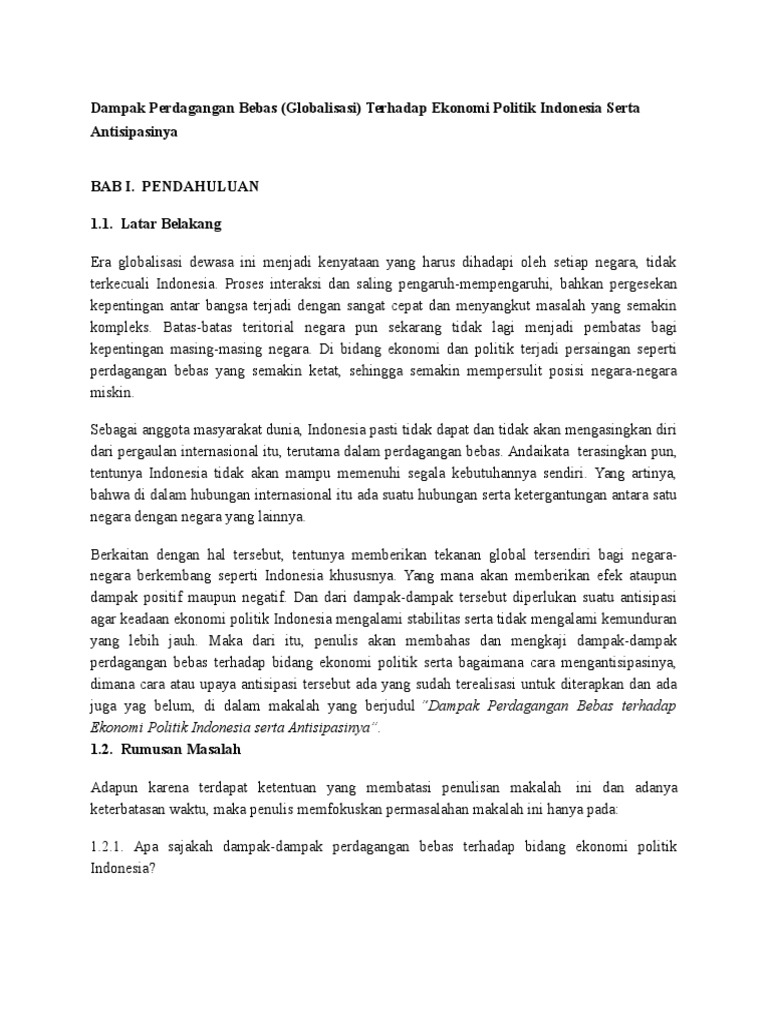 Dampak Perdagangan Bebas Globalisasi Terhadap Ekonomi Politik Indonesia Serta