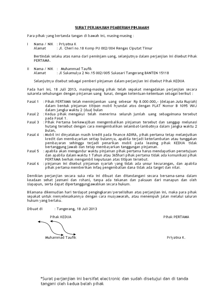 10 Contoh Surat Perjanjian Pinjam Uang Beserta Pengertian Fungsinya
