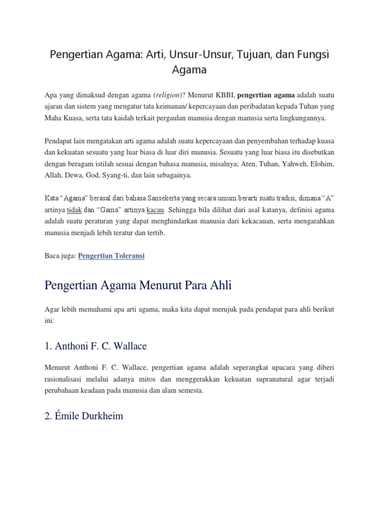 Pengertian Agama Adalah Arti Unsur Tujuan Dan Fungsi Agama