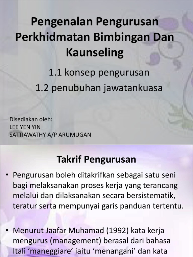Pengenalan Pengurusan Perkhidmatan Bimbingan Dan Kaunseling 1 1 Konsep Pengurusan 1 2 Penubuhan Jawatankuasa