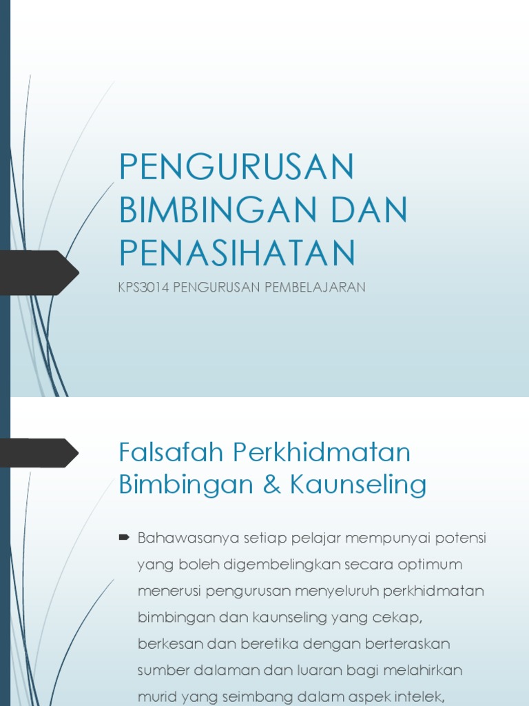 Kps 3014 Pengurusan Pembelajaran Bab 9 Pengurusan Bimbingan Dan Kaunseling