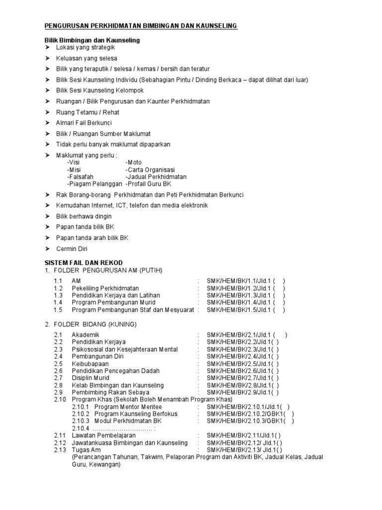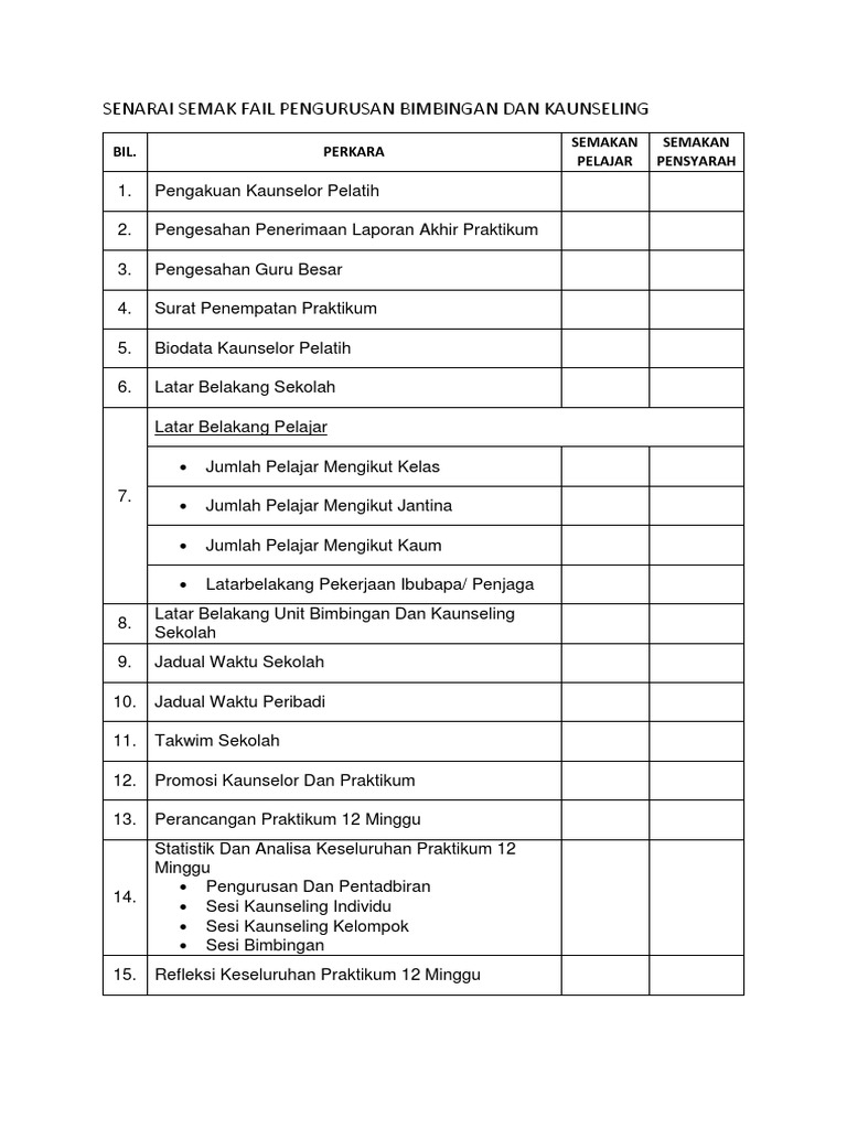 Senarai Semak Fail Pengurusan Bimbingan Dan Kaunseling