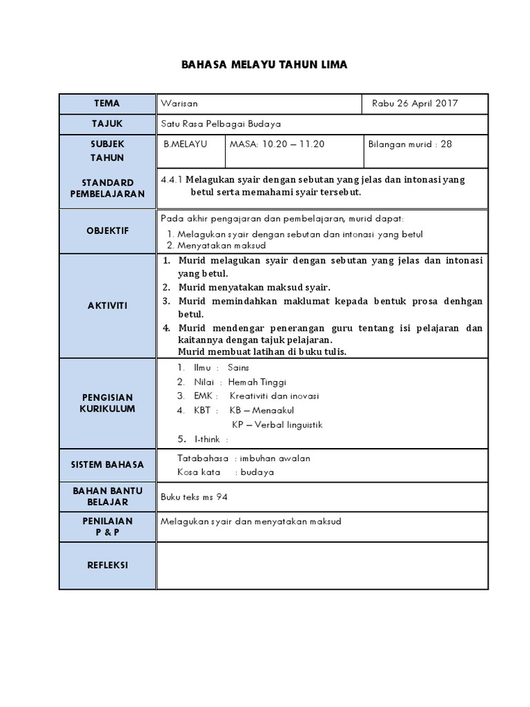 Standard Pembelajaran Tahun 5 Bm 2015 Pdf Document