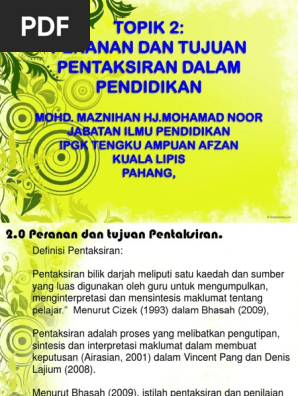 Doc Tajuk 1 Pengertian Dan Konsep Pentaksiran Psv Hidayah Meraji Academia Edu