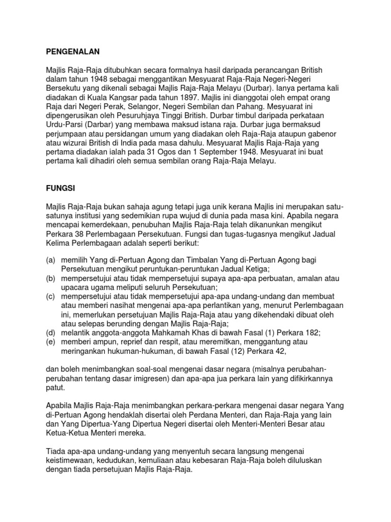 Pdf Sejarah Perkembangan Majlis Raja Raja Melayu