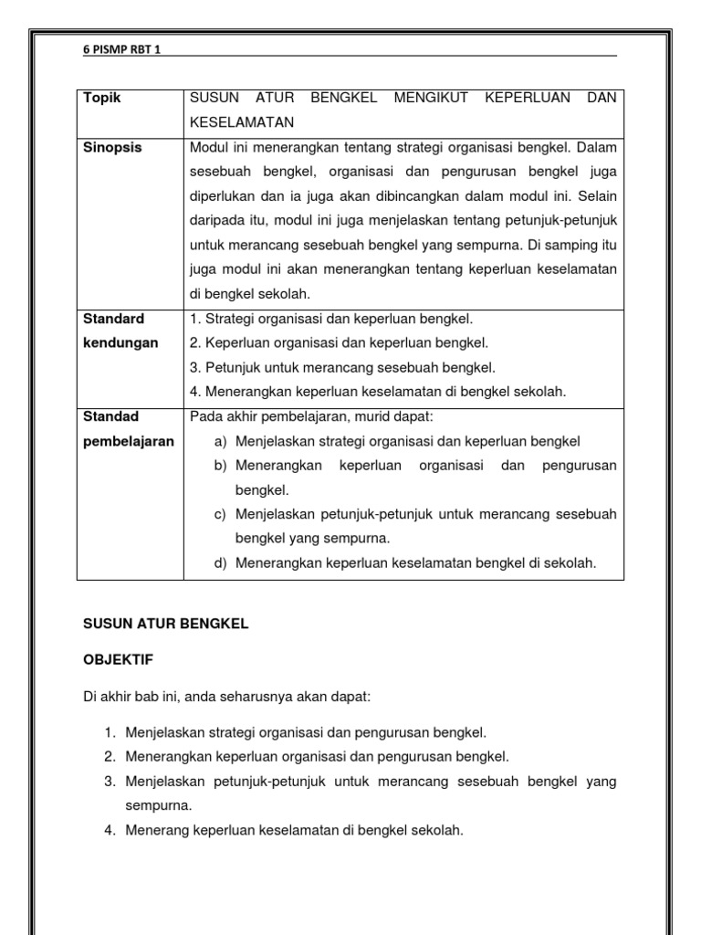 Susun Atur Bengkel Mengikut Keperluan Dan Keselamatan