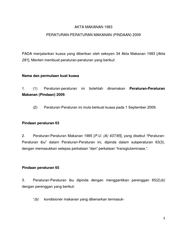 Akta Makanan 1983 Akta 281 Dan Peraturan Peraturan Makanan 1985 Matarz Wanz Blog