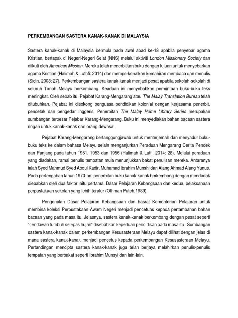 Perkembangan Kesusasteraan Kanak Kanak By Salim Bin Abdullah