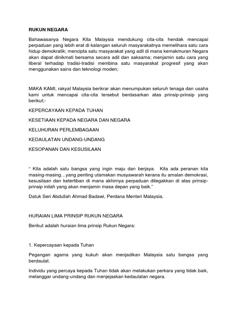 Rukun Negara Sebagai Ideologi Prinsip Prinsip Rukun Negara