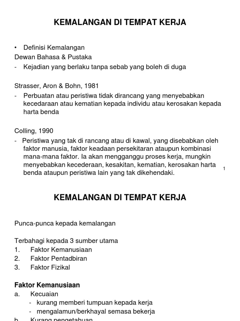 Punca Berlaku Kemalangan Di Tempat Kerja