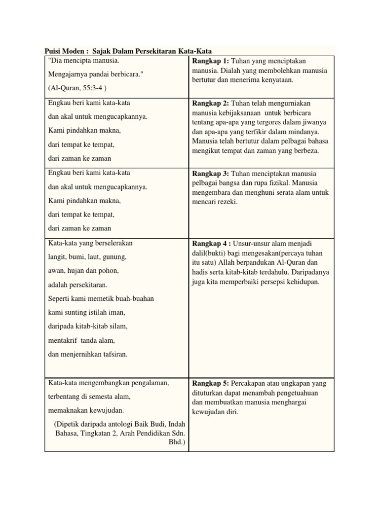 Sajak Dalam Persekitaran Sejak Kata Kata Worksheet