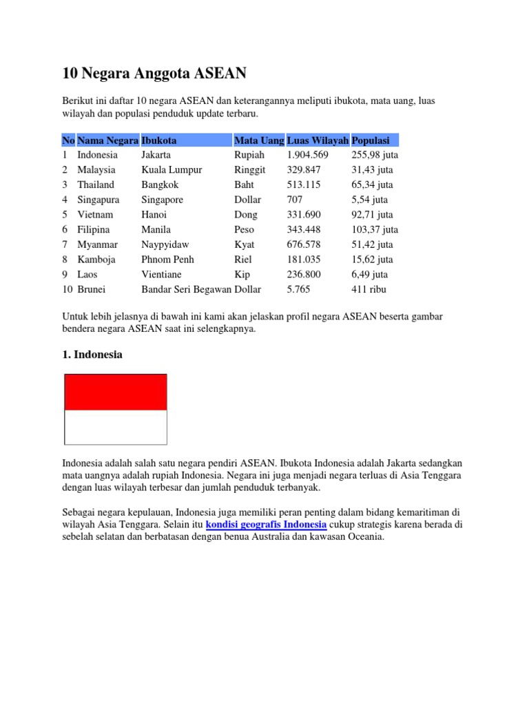 10 Negara Asean Dan Keterangannya Idschool