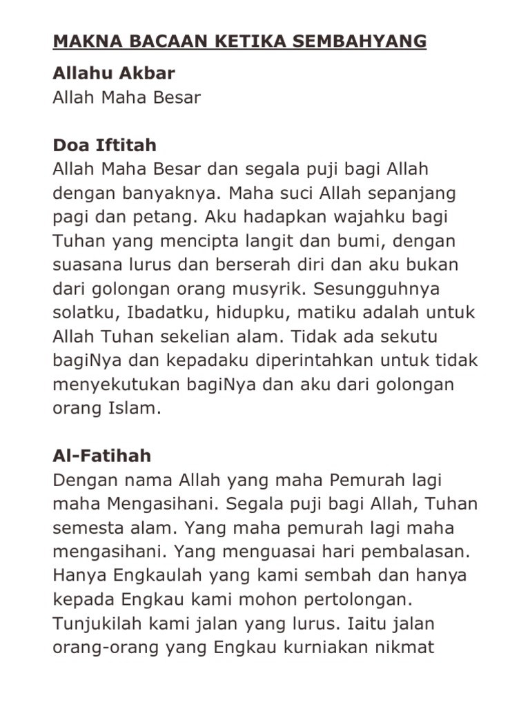 Maksud Bacaan Dalam Solat