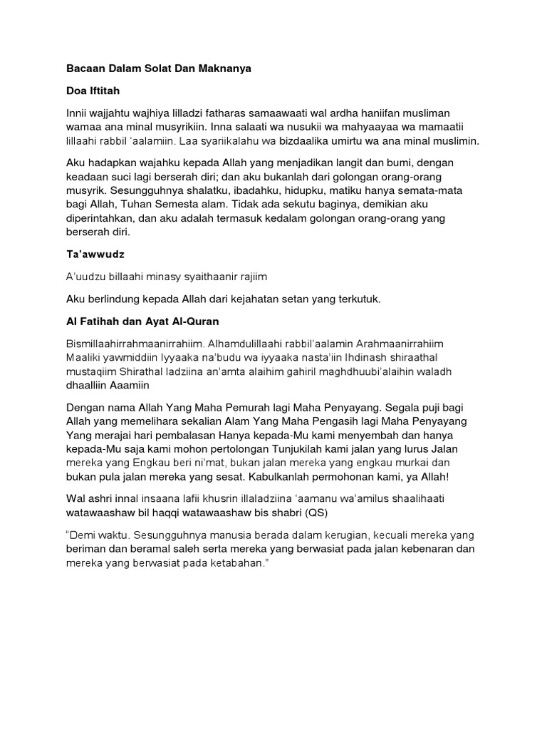 Maksud Bacaan Dalam Solat