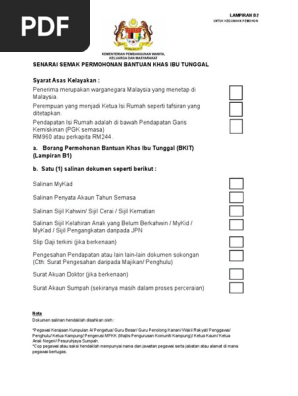 Syarat Asas Kelayakan Senarai Semak Permohonan Bantuan Khas Ibu Tunggal