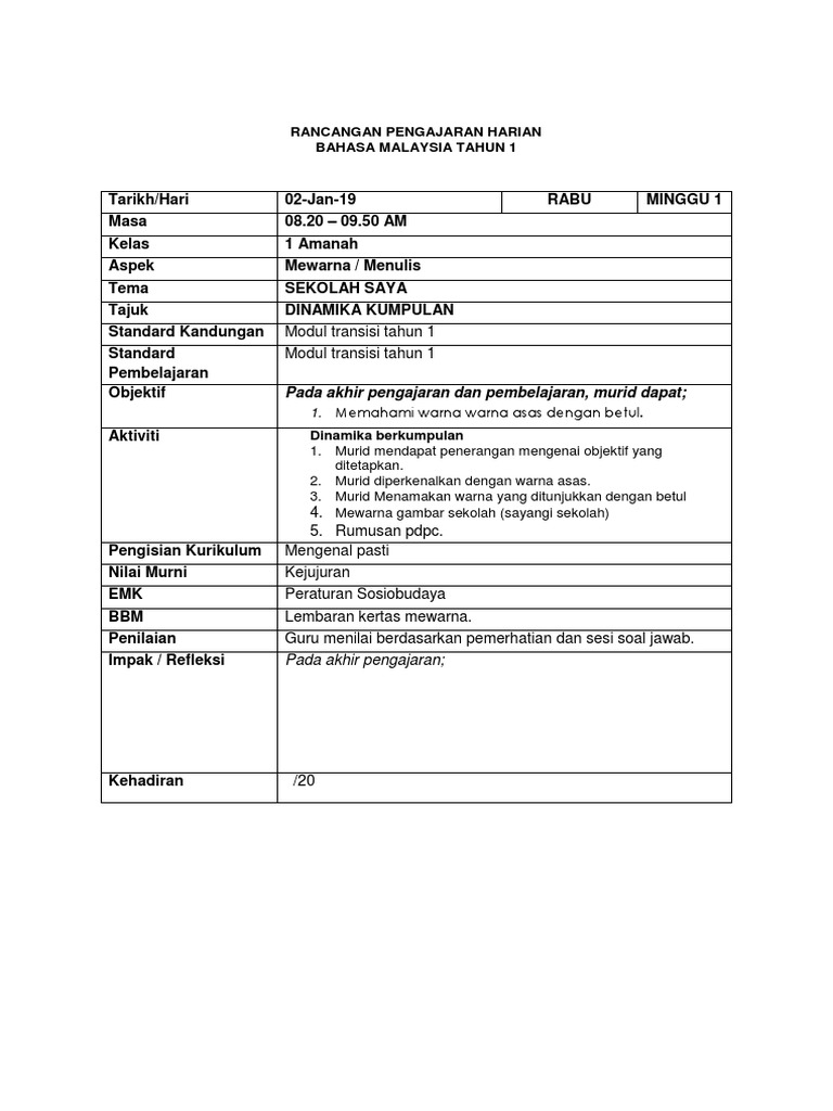 In 2020 Contoh Nilai Murni Dalam Rph In 2020