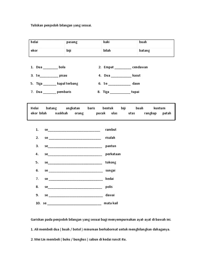 Bahasa Melayu Tahun 6 Penjodoh Bilangan