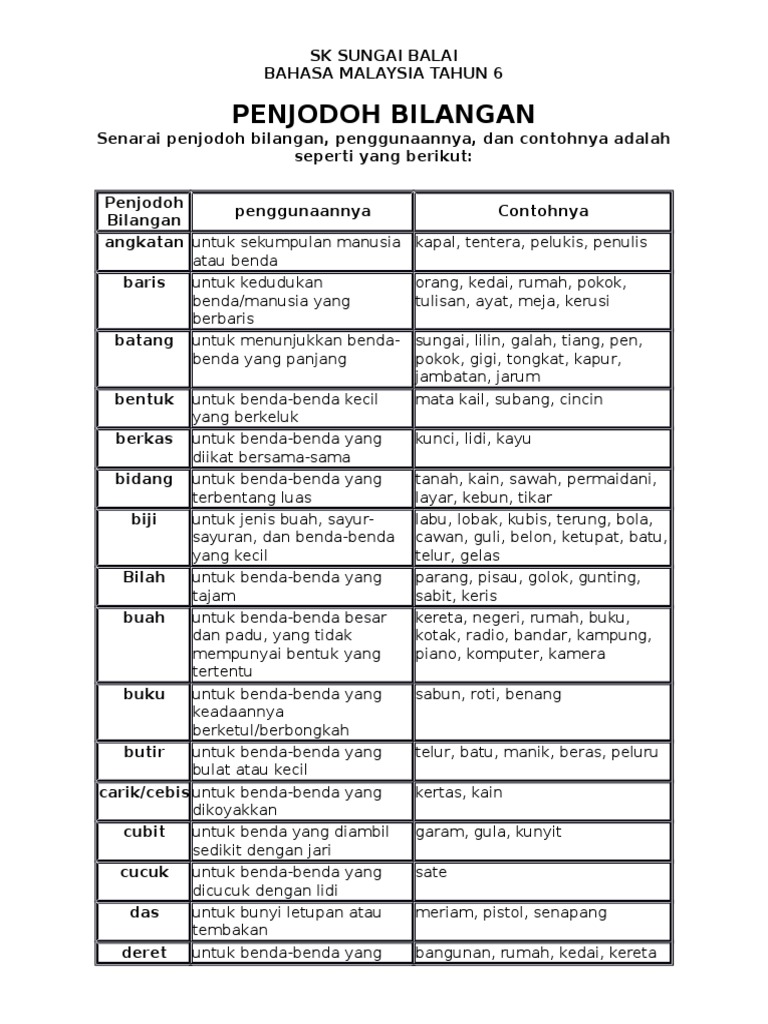 Senarai Penjodoh Bilangan Mykssr Com Buku Gambar Pendidikan Belajar