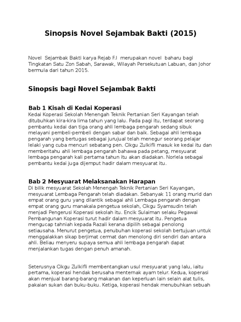 Novel Sejambak Bakti Pdf Novel Sejambak Bakti Sinopsis Keseluruhan Novel Tingkatan 1 Novel Ini Mengisahkan Usaha Murid Dan Guru Koperasi Sekolah Course Hero