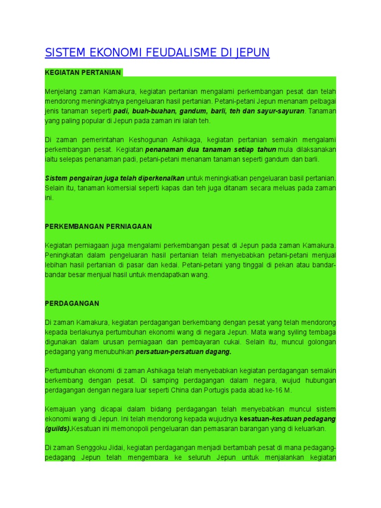 Sistem Ekonomi Feudalisme Di Jepun Abad Ke 16