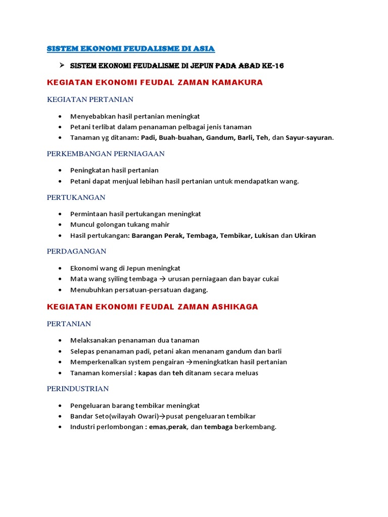 Sistem Ekonomi Feudalisme Di Asia Docx