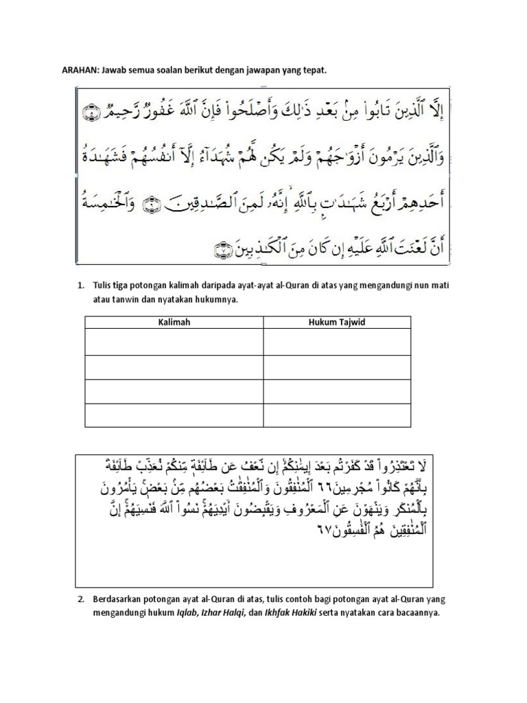 Contoh Soalan Tajwid Hukum Nun Mati Selangor Q