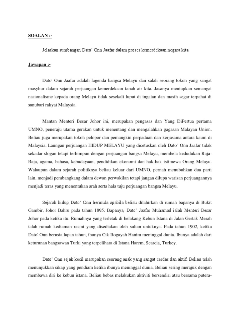 Doc Bincangkan Sumbangan Dato Onn Jaafar Dalam Memansuhkan Malayan Union Di Tanah Melayu Dari Tahun 1946 Hingga 1957 Muhammad Amirul Academia Edu