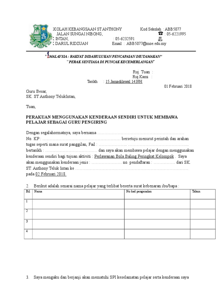 2017 01 13 Contoh Surat Kebenaran Menggunakan Kenderaan Guru Untuk Membawa Pelajar