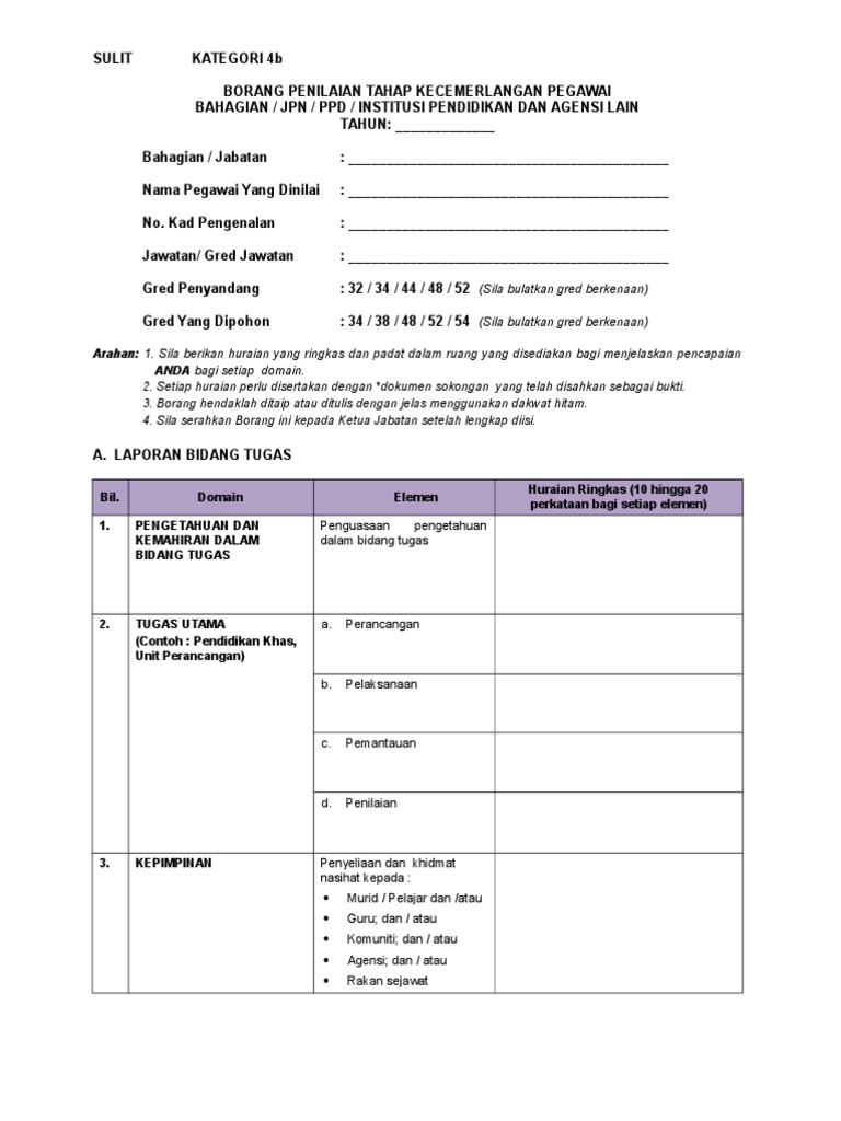 Doc Borang Penilaian Tahap Kecemerlangan Guru Borang Kategori 1b Guru 1 Lismawati Jamaludin Academia Edu