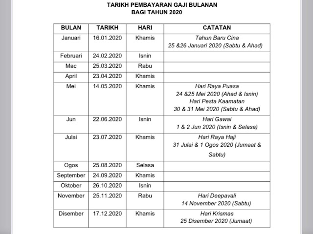 Jadual Tarikh Pembayaran Gaji Penjawat Kerajaan 2020 Cute766
