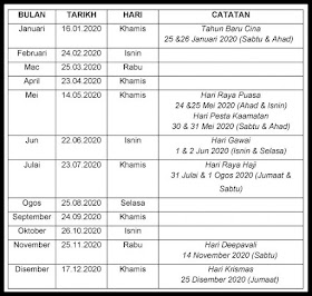 Jadual Gaji 2020 Tarikh Pembayaran Gaji Kakitangan Awam 2020