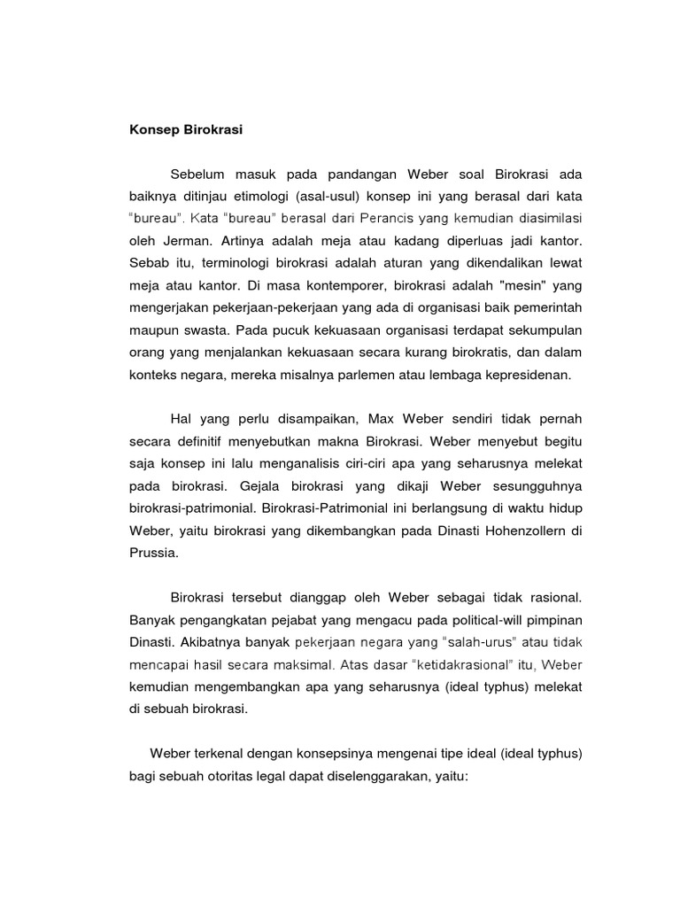 Doc Konsep Birokrasi Menurut Max Weber Bayu Agustian Academia Edu