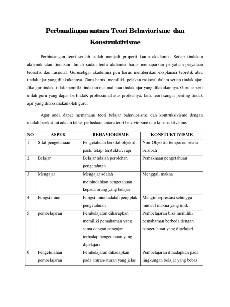 Perbandingan Antara Teori Behaviorisme Dan Konstruktivisme